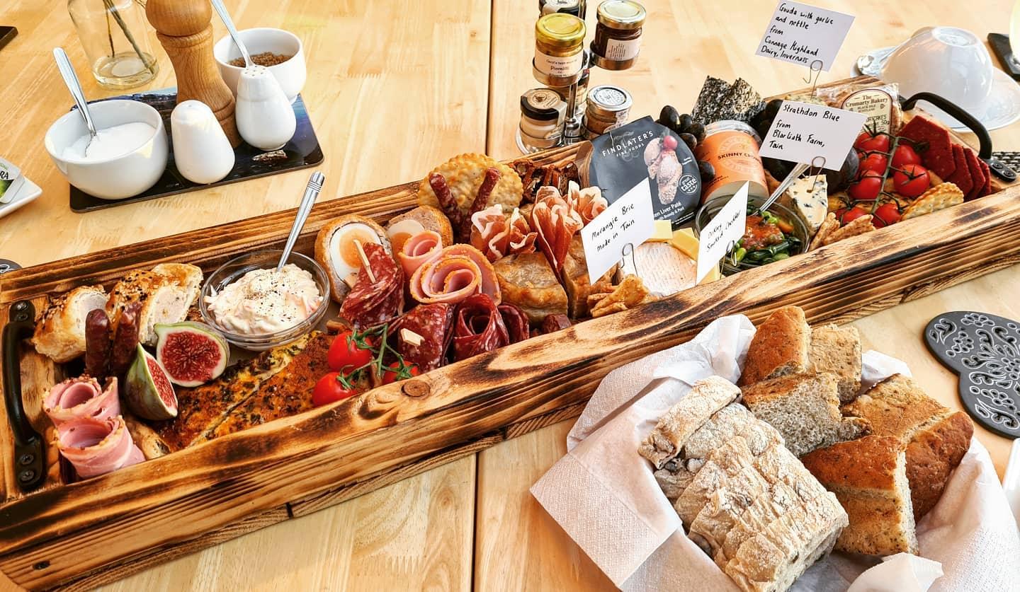 A hearty selection of Scottish cold meats. Also includes home made pork pie, gala pie, sausage roll and scotch egg, locally baked bread and a range of accompaniments.